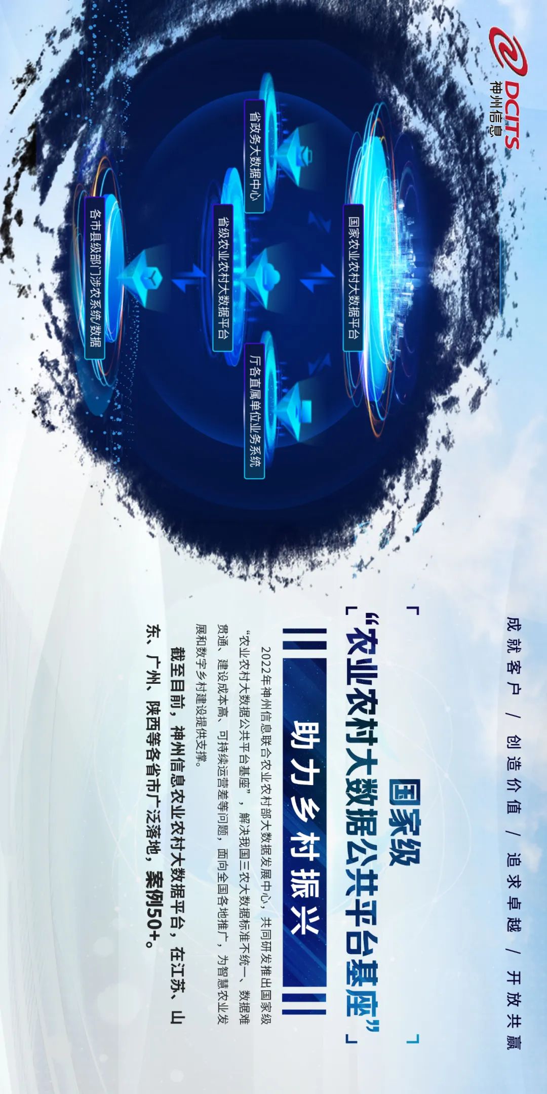 在以数据为核心驱动的数字经济时代,科技与金融将是实现农业强国、乡村振兴的双引擎,神州信息多年来深耕农业数字化建设,以释放三农数据价值为核心,通过新技术、新产品、新模式,促进三农数字化转型,助力金融普惠三农,助力乡村振兴。